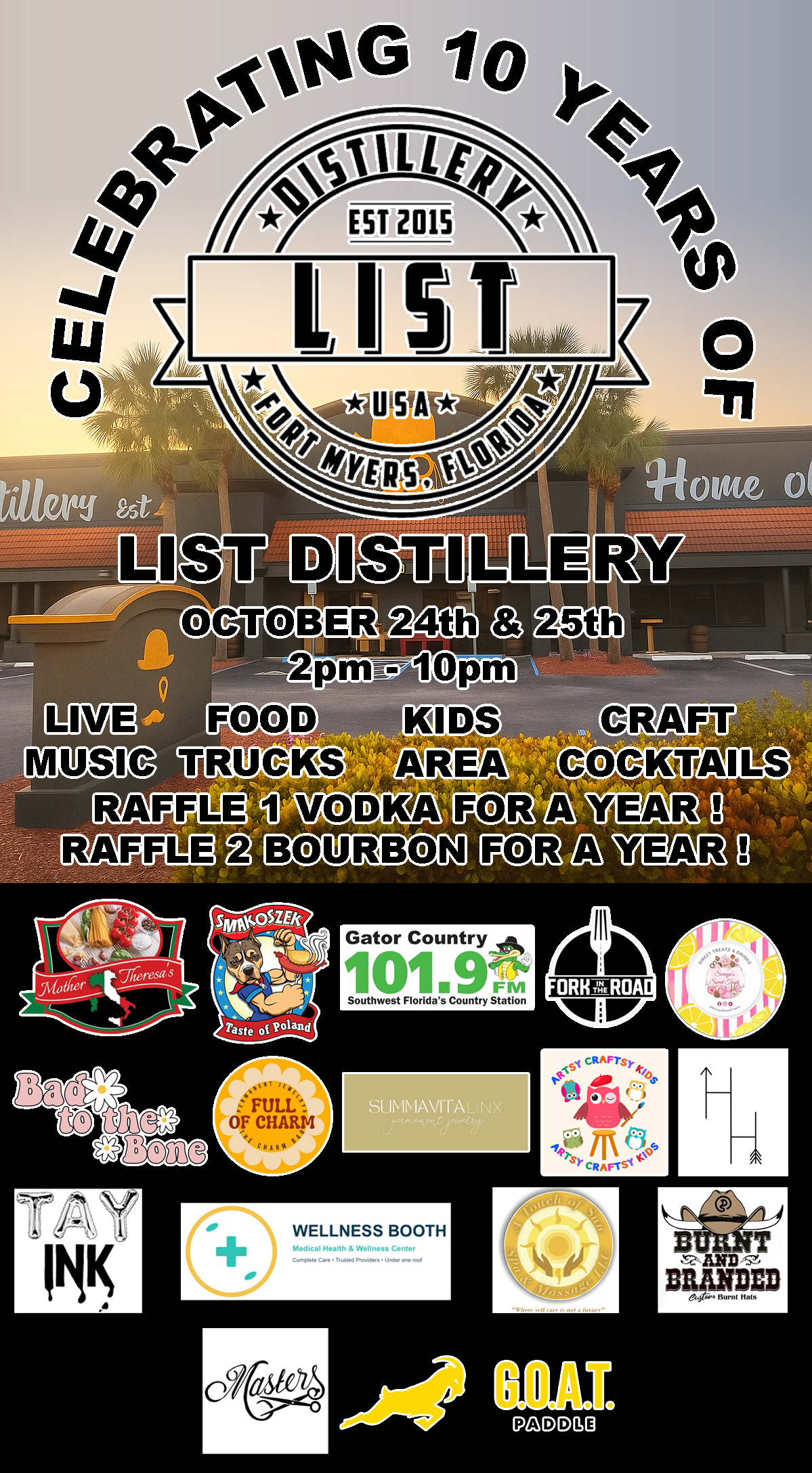 We are thrilled to announce that List Distillery will be celebrating our 10th anniversary next month on October 24th & 25th!